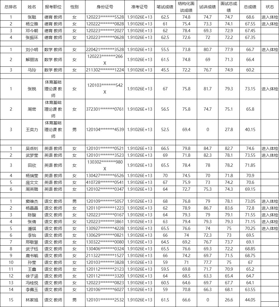 - 天津市东丽区2024年公开招聘教师(校医)100人成绩查询