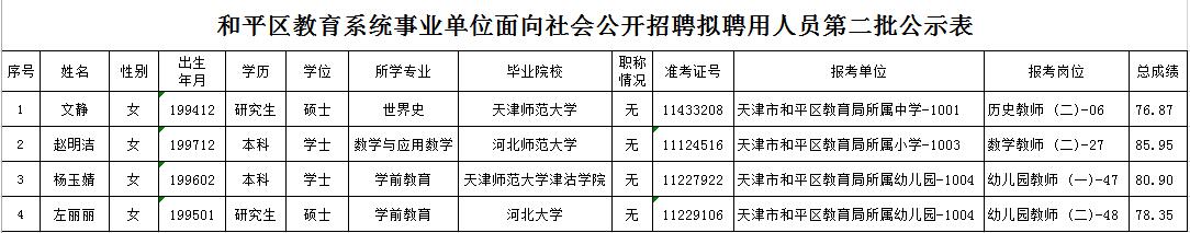 附件:和平区教育系统事业单位面向社会公开招聘拟聘用人员第二批公示表
