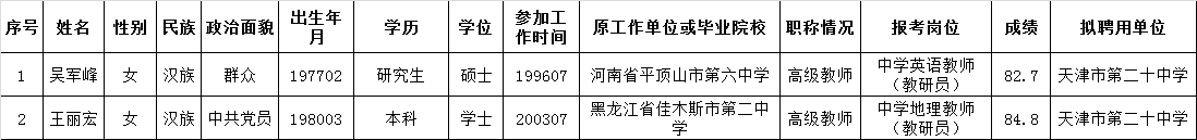 天津市和平区2019年公开招聘引进高层次优秀教育人才拟聘用人员第二批公示