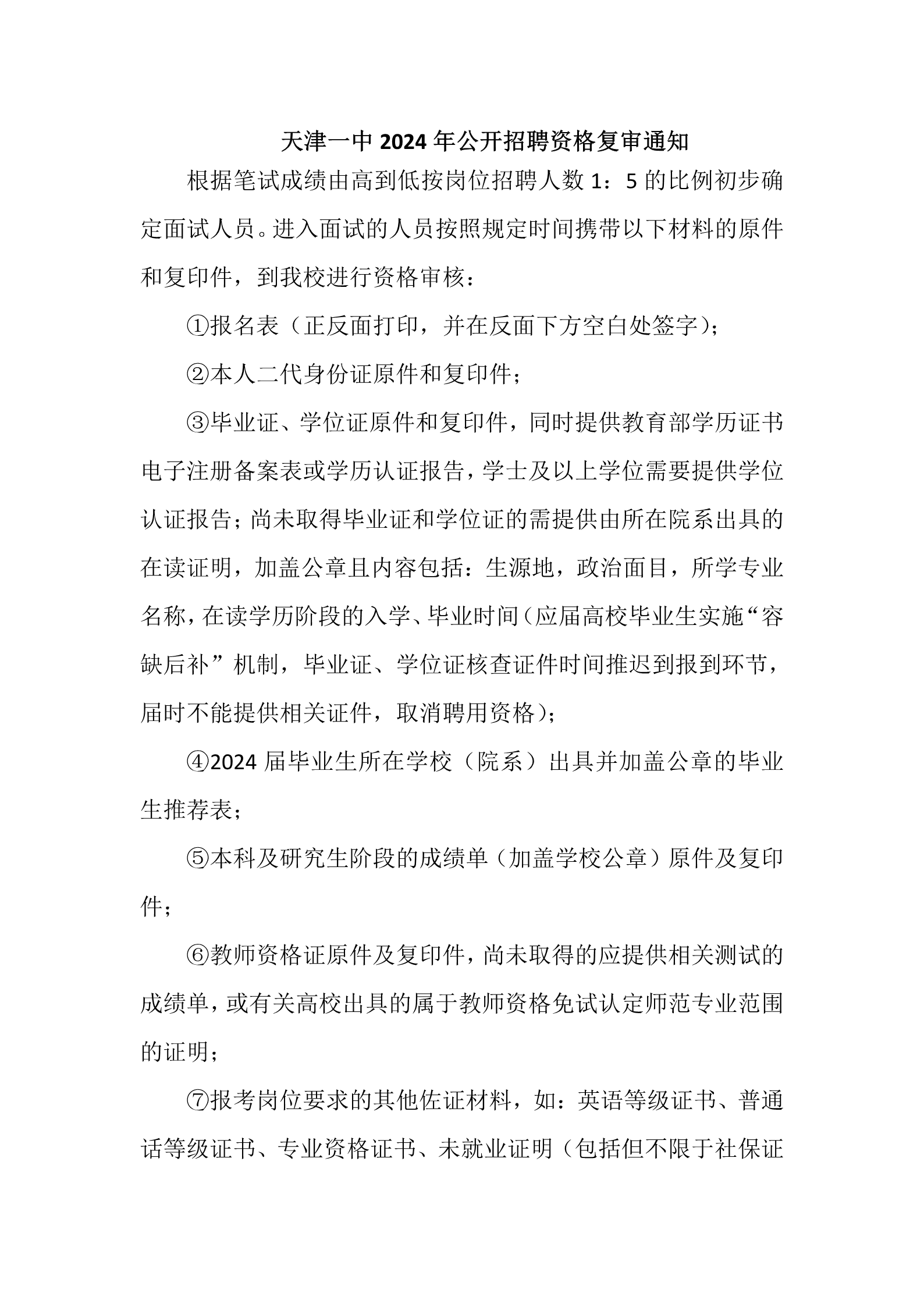 - 2024年天津港保税区教育系统补充招聘工作人员资格复审通知