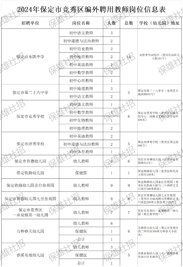保定市竞秀区招聘77名幼儿园、中学编外聘用教师的公告