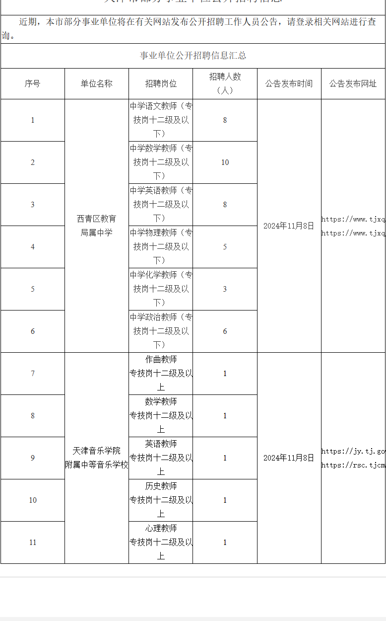 天津市部分事业单位公开招聘信息11.7