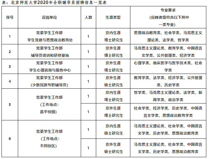 北京师范大学2020年专职辅导员(全职辅导员)招聘启事