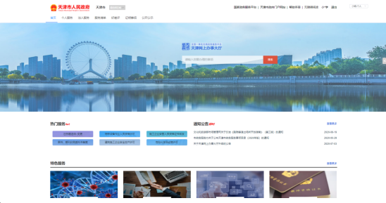 一、登录天津网上办事大厅(https://zwfw.tj.gov.cn/),点击右上角“登录”按钮