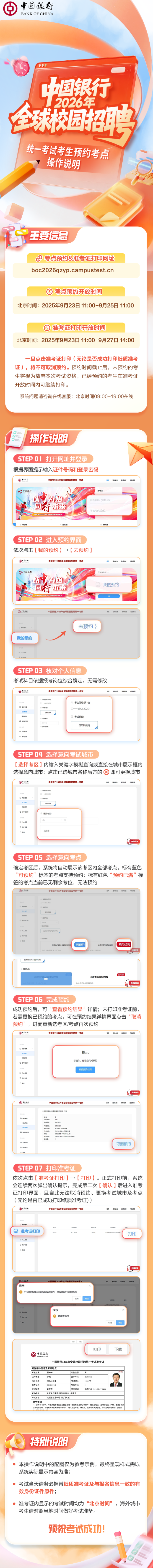 中国银行2026年全球校园招聘统一考试考生预约考点操作说明