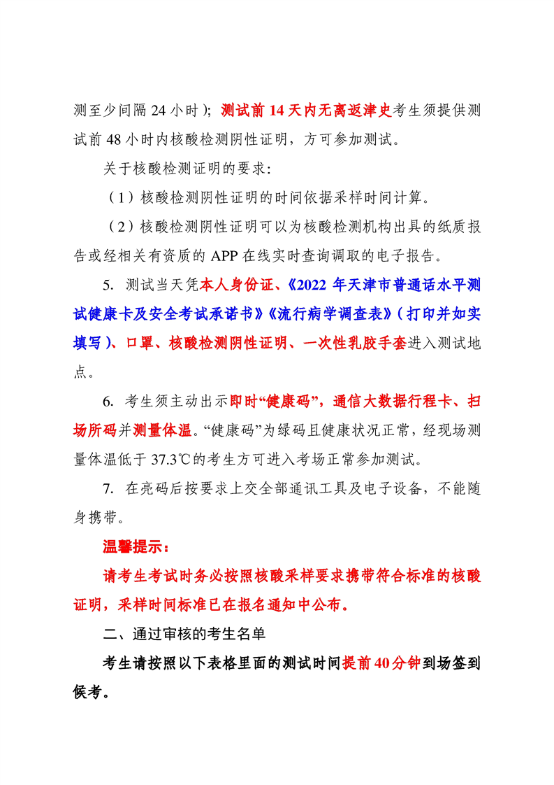 天津市2022年面向高校学生教师资格认定工作专场普通话水平测试考生须知及考生名单