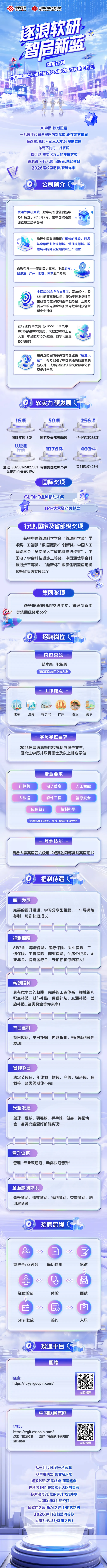 中国联通软件研究院2026届校园招聘