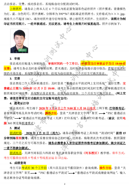 2019年12月份天津市滨海新区测试站普通话水平测试网上报名通知