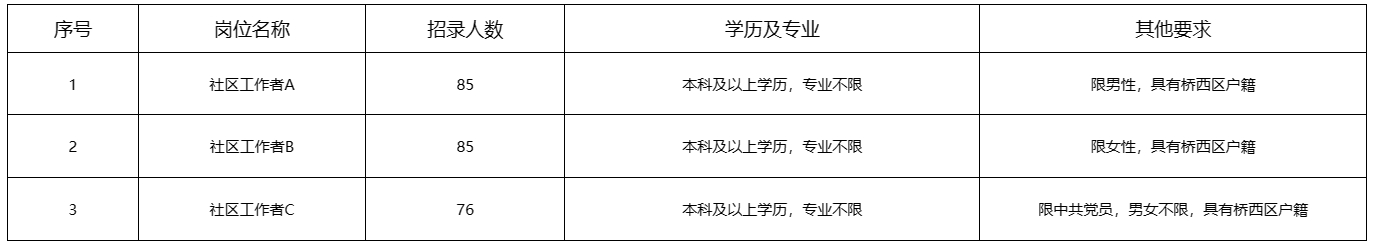 2024年,石家庄市桥西区共计划招聘社区工作者246名,具体职位见下表。