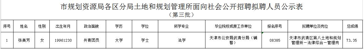 2020年天津市规划和自然资源局各区土地和规划管理所事业单位公开招聘拟聘人员公示(第三批)