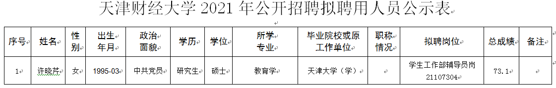 天津财经大学2021年公开招聘拟聘用人员公示
