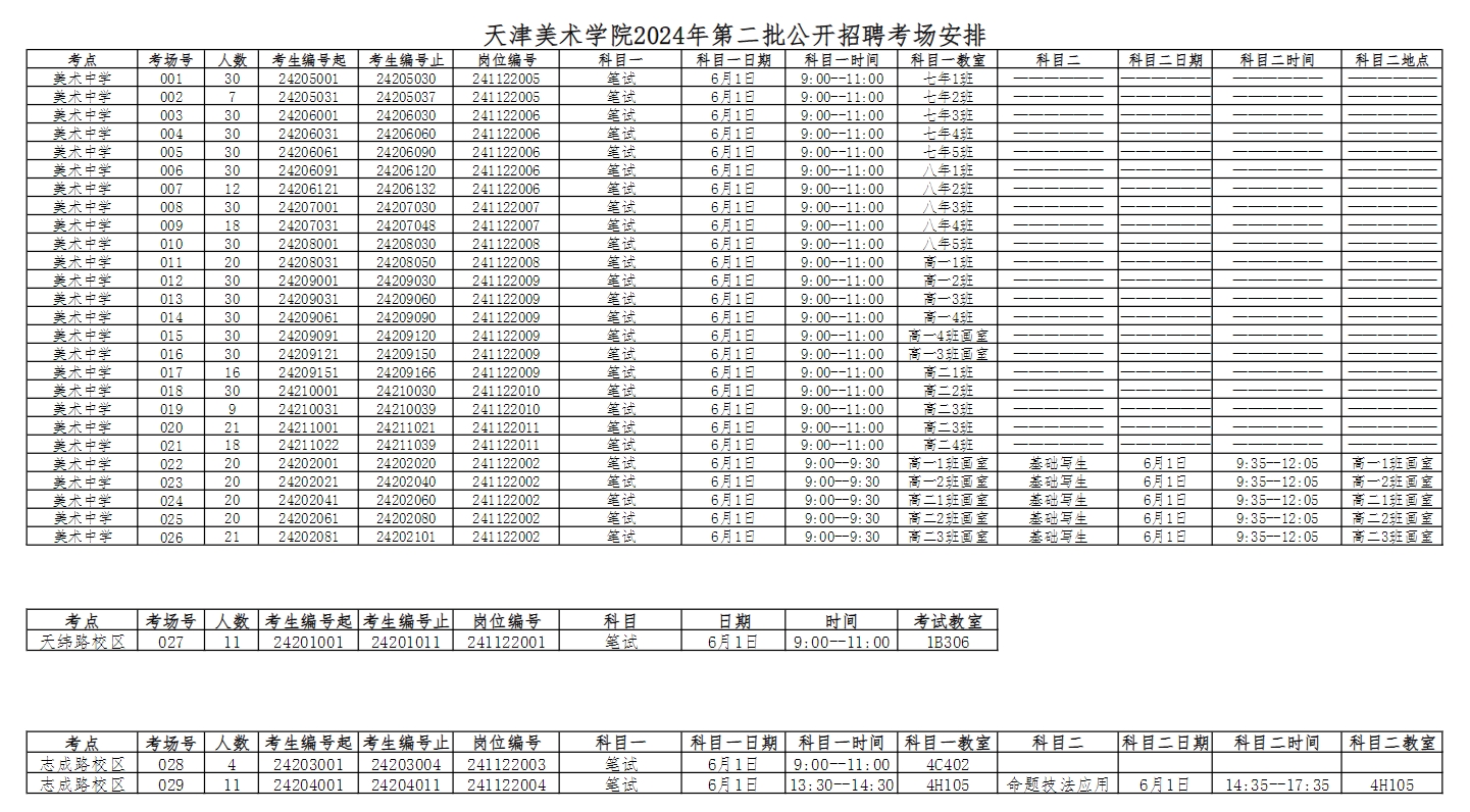 天津美术学院2024年第二批公开招聘硕士工作人员初试考场安排