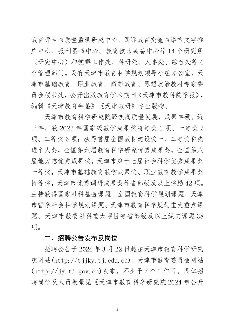 天津市教育科学研究院2024年第二批公开招聘教研员公告