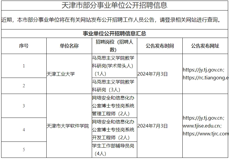 天津市大学软件学院2024年公开招聘4人方案(博士专技岗)