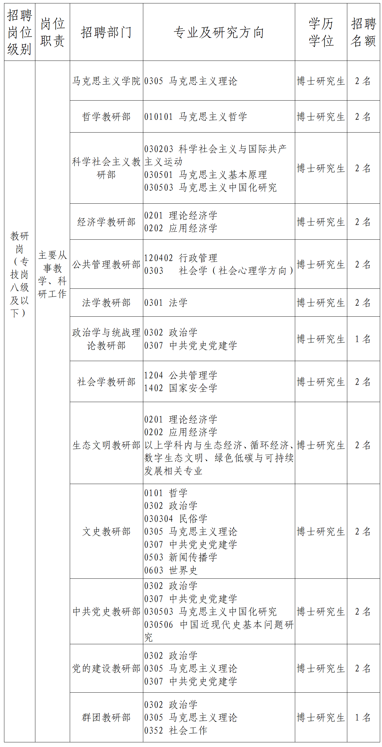 为进一步加强校院人才队伍建设,根据教学科研和学科建设需要,按照《天津市事业单位公开招聘人员实施办法(试行)》(津人社局发〔2011〕10号)、《市委组织部市人力社保局关于进一步完善事业单位公开招聘工作的通知》(津人社局发〔2017〕37号)和《市委组织部市人力社保局关于进一步做好事业单位公开招聘高校毕业生等有关工作的通知》(津人社办发〔2020〕100号),2025年,中共天津市委党校(天津行政学院、中共天津市委党史研究室)拟面向全国公开招聘24名教学科研人员。现公告如下: