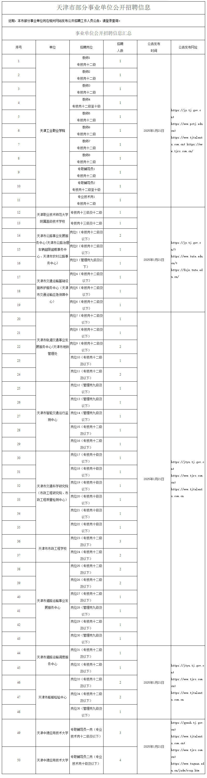天津市交通运输委员会2025年事业单位公开招聘工作人员公告