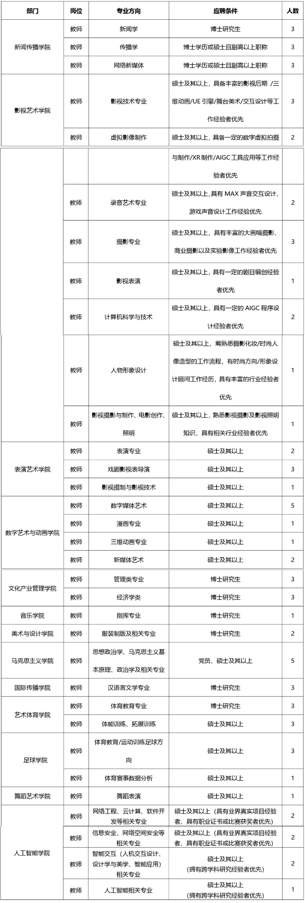 河北传媒学院2025年度招聘计划