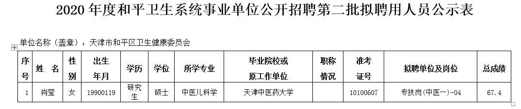 - 2022年和平区卫生健康系统事业单位公开招聘拟聘用人员公示(第