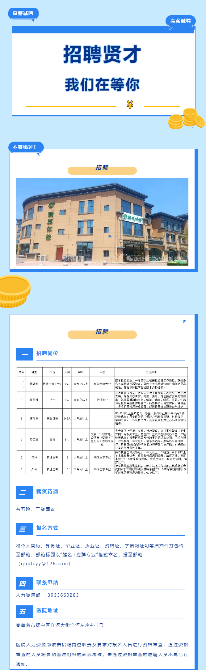 河北秦皇岛骊城医院招聘启事