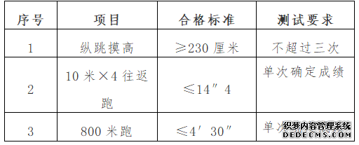 体能测评项目及标准: